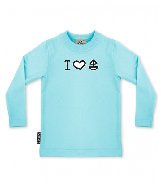 We make sustainable UAX clothing! - hand sewn in the Czech Republic uaxKids uaxAll productsT-shirtsT-SHIRTS SKRATCHILD+design 1102 - I LOVE YACHTINGPASTEL BLUE
