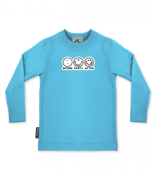 We make sustainable UAX clothing! - hand sewn in the Czech Republic uaxKids uaxAll productsT-shirtsT-SHIRTS SKRATCHILD+design 1120 - BEFORE PARTY AFTERBLUE ATOLL