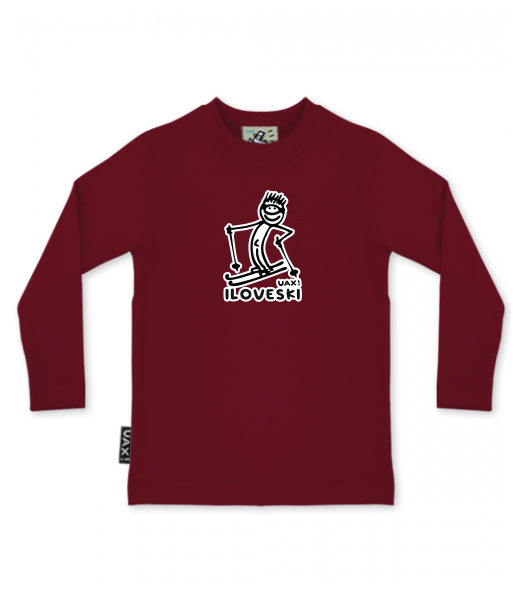 Baby boys T-SHIRTS SKRATCHILD+ UAX for kid with design 1122 I LOVE SKI in color DARK RED