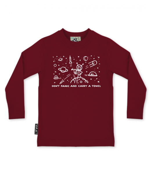 We make sustainable UAX clothing! - hand sewn in the Czech Republic uaxKids uaxAll productsT-shirtsT-SHIRTS SKRATCHILD+design 1156 - DON'T PANIC GALAXYDARK RED