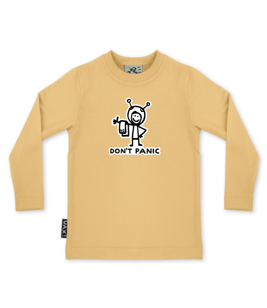 We make sustainable UAX clothing! - hand sewn in the Czech Republic uaxKids uaxAll productsT-shirtsT-SHIRTS SKRATCHILD+design 1157 - DON'T PANICMUSTARD
