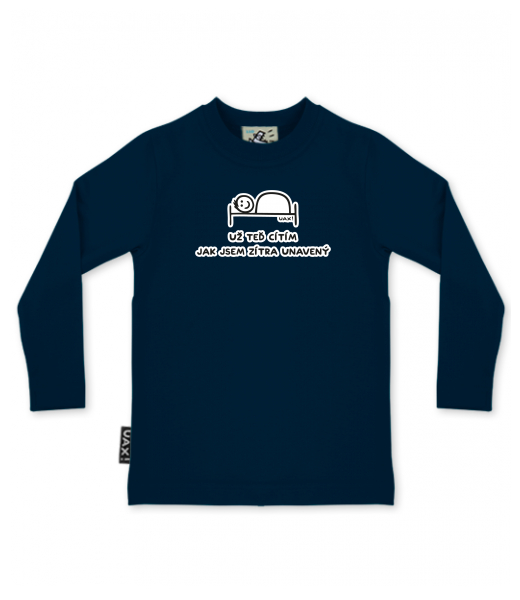 We make sustainable UAX clothing! - hand sewn in the Czech Republic uaxKids uaxAll productsT-shirtsT-SHIRTS SKRATCHILD+design 1200 - UŽ TEĎ CÍTÍM JAK JSEM ZÍTRA UNAVENÝDARK NAVY