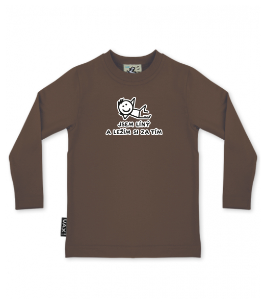 Baby boys T-SHIRTS SKRATCHILD+ UAX for kid with design 1217 JSEM LÍNÝ A LEŽÍM SI ZA TÍM in color CHESTNUT