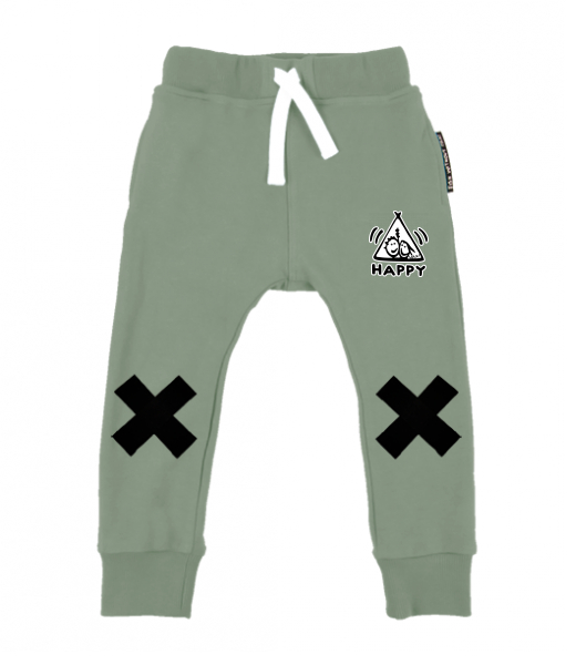 Children's tracksuit slim CROSS with an original print for kid with design 1113 HAPPY in color OLIVA