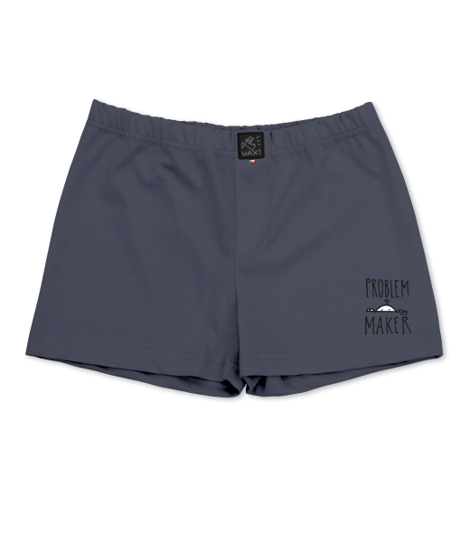We make sustainable UAX clothing! - hand sewn in the Czech Republic uaxKids uaxAll productsTrunksBOYS SHORTSdesign 1385 - PROBLEM MAKERGRAY INK