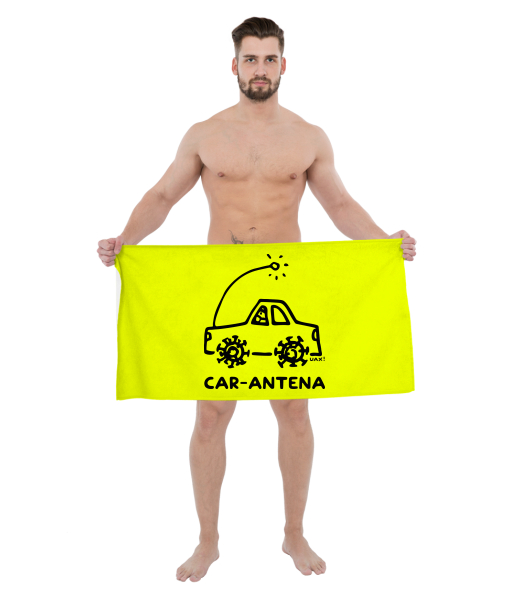 The original towel imprinted with UAX! Cycling for kid with design 1284 CAR-ANTENA in color GREEN LIMET
