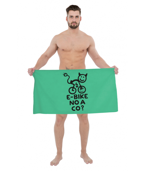 The original towel imprinted with UAX! Cycling for kid with design 1291 E-BIKE NO A CO? in color EUCALYPTO GREEN