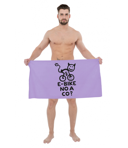 The original towel imprinted with UAX! Cycling for kid with design 1291 E-BIKE NO A CO? in color LAVENDER