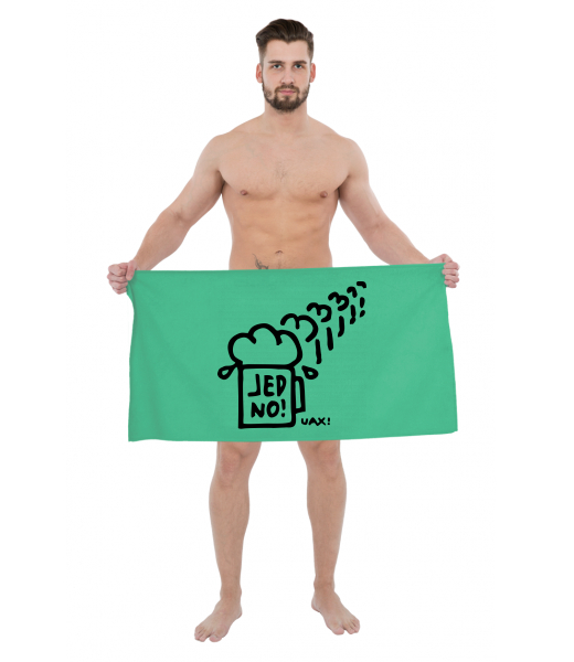 The original towel imprinted with UAX! Cycling for kid with design 1340 JEDNO in color EUCALYPTO GREEN