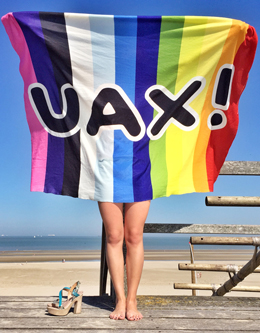 The original towel imprinted with UAX! For printing towels and toweling use dye-sublimation technology guarantees excellent color saturation and an extensive range of colors. Towel UAX! We print on one side (the other side remains white and is used to blow-dry). One side of the towel is 100% cotton for the drying of a second side of the towel is 100% polyester which does print design! Wash at 60°C