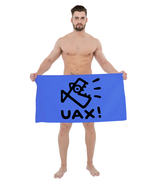 The original towel imprinted with UAX! For printing towels and toweling use dye-sublimation technology guarantees excellent color saturation and an extensive range of colors. Towel UAX! We print on one side (the other side remains white and is used to blow-dry). One side of the towel is 100% cotton for the drying of a second side of the towel is 100% polyester which does print design! Wash at 60°C