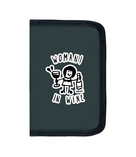 We make sustainable UAX clothing! - hand sewn in the Czech Republic uaxKids uaxGolf collectionWalletsGOLF SCORECARD HOLDERdesign 1347 - WOMAN IN WINE 2GREY INK