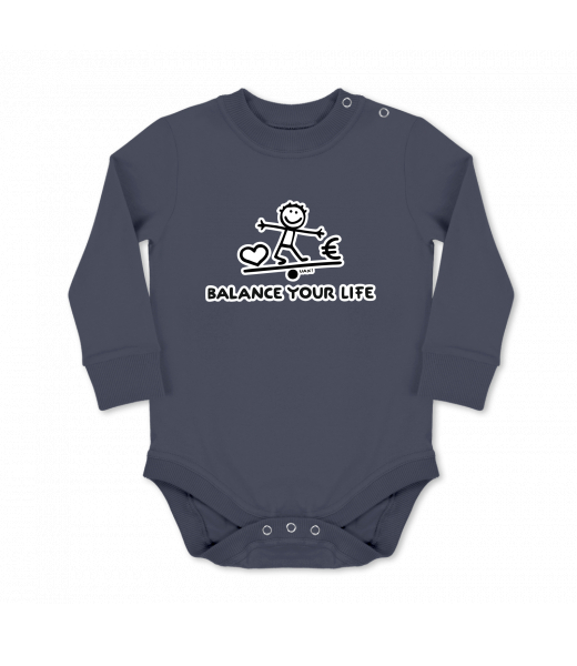 We make sustainable UAX clothing! - hand sewn in the Czech Republic uaxKids uaxSki collectionBaby bodyBABY BODY LONGdesign 1039 - BALANCE YOUR LIFEGRAY INK