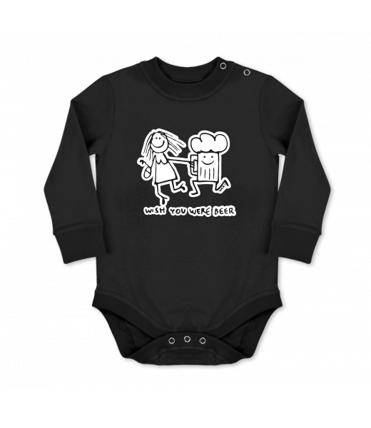 We make sustainable UAX clothing! - hand sewn in the Czech Republic uaxKids uaxSki collectionBaby bodyBABY BODY LONGdesign 1049 - WISH YOU WERE BEERBLACK