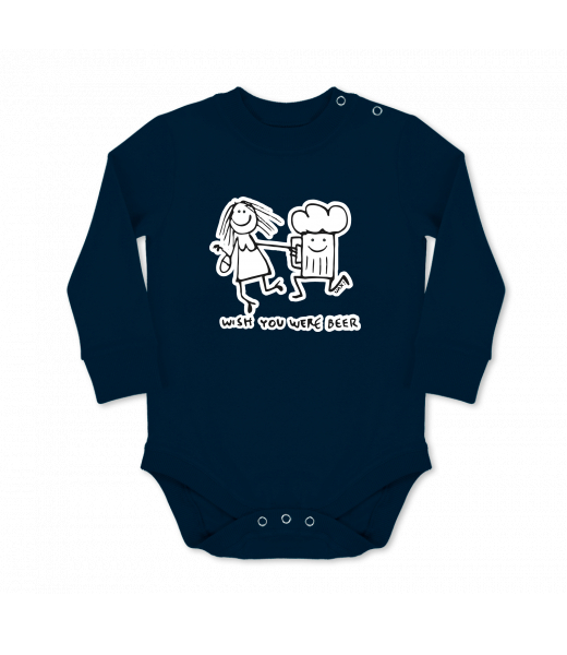 We make sustainable UAX clothing! - hand sewn in the Czech Republic uaxKids uaxSki collectionBaby bodyBABY BODY LONGdesign 1049 - WISH YOU WERE BEERDARK NAVY
