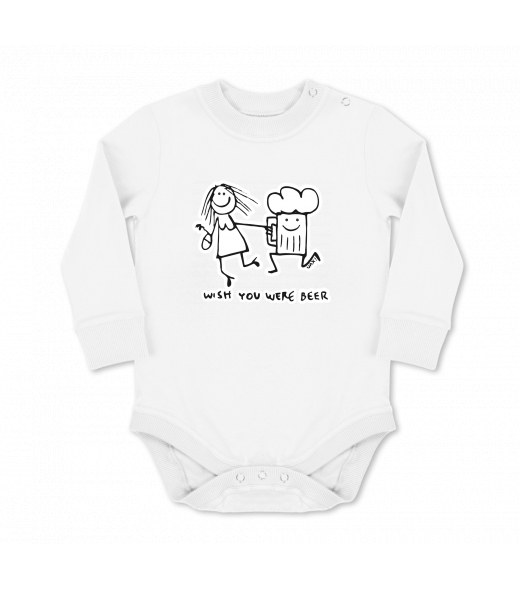 We make sustainable UAX clothing! - hand sewn in the Czech Republic uaxKids uaxSki collectionBaby bodyBABY BODY LONGdesign 1049 - WISH YOU WERE BEERWHITE