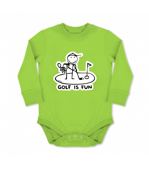We make sustainable UAX clothing! - hand sewn in the Czech Republic uaxKids uaxSki collectionBaby bodyBABY BODY LONGdesign 1057 - GOLF IS FUNPARROT GREEN