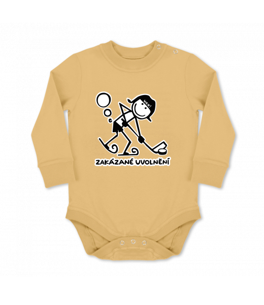 We make sustainable UAX clothing! - hand sewn in the Czech Republic uaxKids uaxSki collectionBaby bodyBABY BODY LONGdesign 1059 - ZAKÁZANÉ UVOLNĚNÍMUSTARD