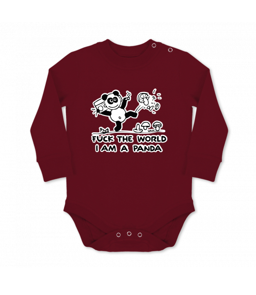 We make sustainable UAX clothing! - hand sewn in the Czech Republic uaxKids uaxSki collectionBaby bodyBABY BODY LONGdesign 1060 - I AM A PANDADARK RED