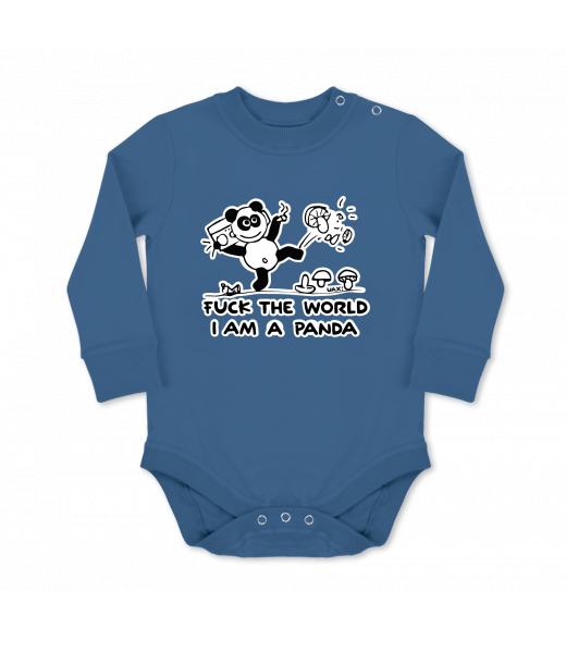 We make sustainable UAX clothing! - hand sewn in the Czech Republic uaxKids uaxSki collectionBaby bodyBABY BODY LONGdesign 1060 - I AM A PANDAMOONLIGHT BLUE