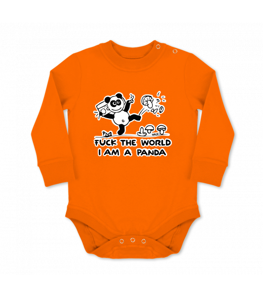 We make sustainable UAX clothing! - hand sewn in the Czech Republic uaxKids uaxSki collectionBaby bodyBABY BODY LONGdesign 1060 - I AM A PANDASIGNAL ORANGE
