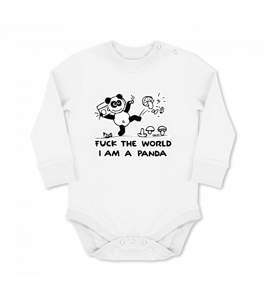 We make sustainable UAX clothing! - hand sewn in the Czech Republic uaxKids uaxSki collectionBaby bodyBABY BODY LONGdesign 1060 - I AM A PANDAWHITE