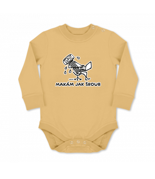 UAX baby body Ski collection for kid with design 1061 MAKÁM JAK ŠROUB in color MUSTARD