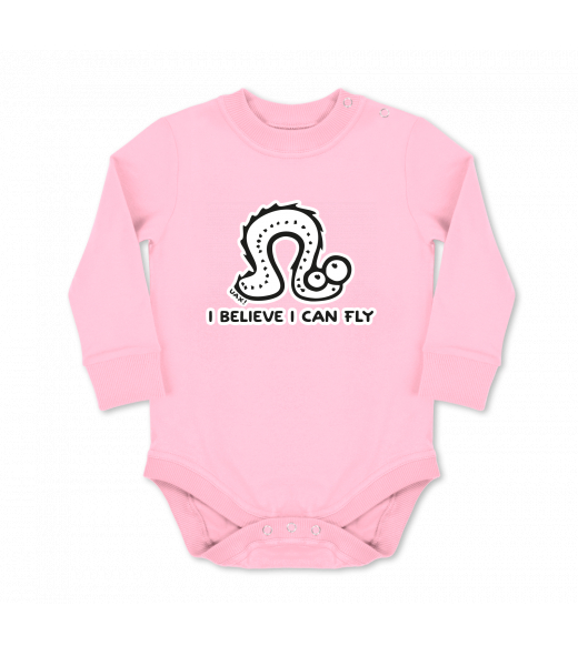 We make sustainable UAX clothing! - hand sewn in the Czech Republic uaxKids uaxSki collectionBaby bodyBABY BODY LONGdesign 1062 - I BELIVE I CAN FLYBABY PINK