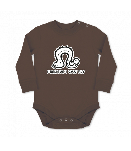 We make sustainable UAX clothing! - hand sewn in the Czech Republic uaxKids uaxSki collectionBaby bodyBABY BODY LONGdesign 1062 - I BELIVE I CAN FLYCHESTNUT