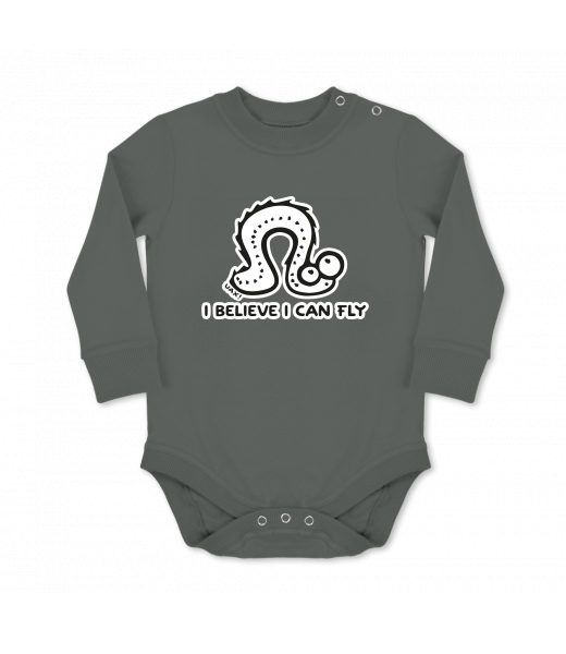 We make sustainable UAX clothing! - hand sewn in the Czech Republic uaxKids uaxSki collectionBaby bodyBABY BODY LONGdesign 1062 - I BELIVE I CAN FLYDARK GRAY