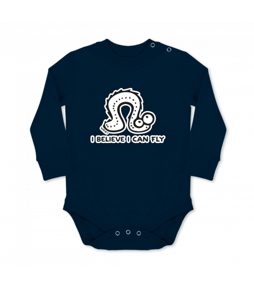 We make sustainable UAX clothing! - hand sewn in the Czech Republic uaxKids uaxSki collectionBaby bodyBABY BODY LONGdesign 1062 - I BELIVE I CAN FLYDARK NAVY
