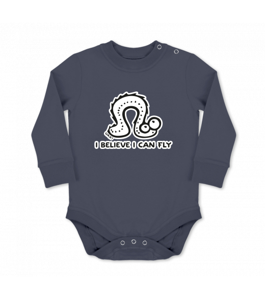 We make sustainable UAX clothing! - hand sewn in the Czech Republic uaxKids uaxSki collectionBaby bodyBABY BODY LONGdesign 1062 - I BELIVE I CAN FLYGRAY INK