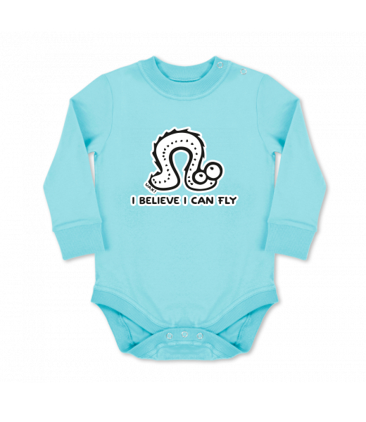 We make sustainable UAX clothing! - hand sewn in the Czech Republic uaxKids uaxSki collectionBaby bodyBABY BODY LONGdesign 1062 - I BELIVE I CAN FLYPASTEL BLUE