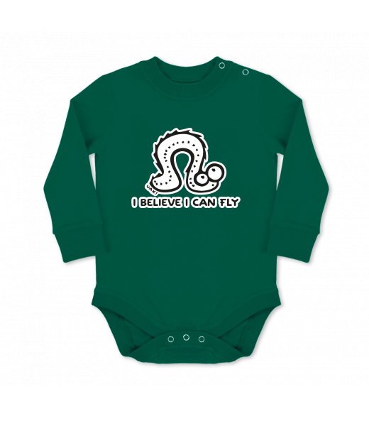 We make sustainable UAX clothing! - hand sewn in the Czech Republic uaxKids uaxSki collectionBaby bodyBABY BODY LONGdesign 1062 - I BELIVE I CAN FLYUNIVERSITY GREEN