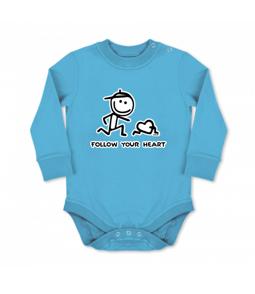 We make sustainable UAX clothing! - hand sewn in the Czech Republic uaxKids uaxSki collectionBaby bodyBABY BODY LONGdesign 1063 - FOLOW YOUR HEARTBLUE ATOLL