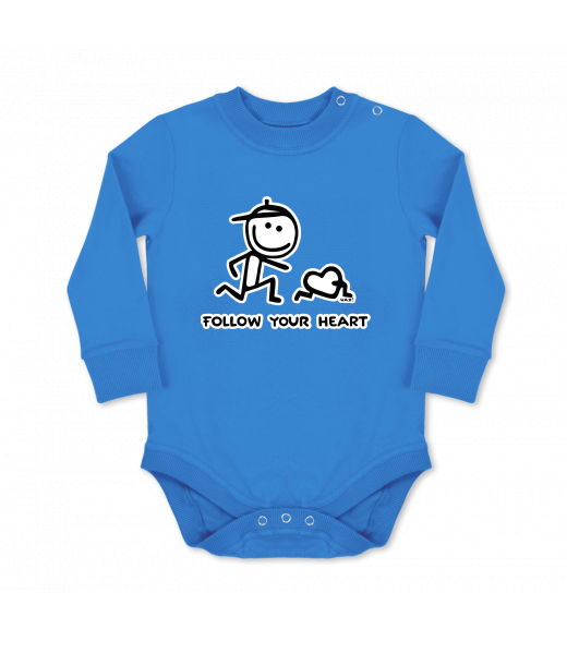 We make sustainable UAX clothing! - hand sewn in the Czech Republic uaxKids uaxSki collectionBaby bodyBABY BODY LONGdesign 1063 - FOLOW YOUR HEARTCAPRI BLUE