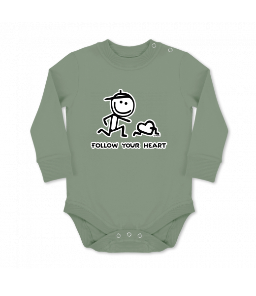UAX baby body Ski collection for kid with design 1063 FOLOW YOUR HEART in color OLIVA