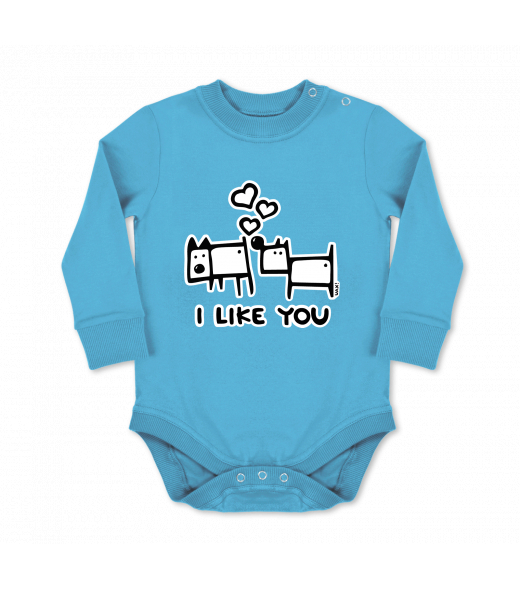 We make sustainable UAX clothing! - hand sewn in the Czech Republic uaxKids uaxSki collectionBaby bodyBABY BODY LONGdesign 1066 - I LIKE YOUBLUE ATOLL