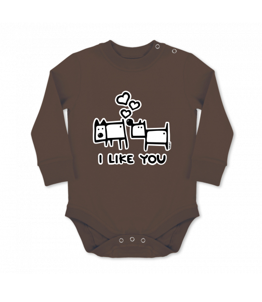We make sustainable UAX clothing! - hand sewn in the Czech Republic uaxKids uaxSki collectionBaby bodyBABY BODY LONGdesign 1066 - I LIKE YOUCHESTNUT
