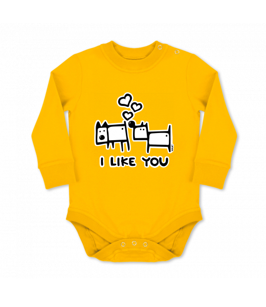 We make sustainable UAX clothing! - hand sewn in the Czech Republic uaxKids uaxSki collectionBaby bodyBABY BODY LONGdesign 1066 - I LIKE YOUGOLDEN CREAM