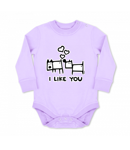 We make sustainable UAX clothing! - hand sewn in the Czech Republic uaxKids uaxSki collectionBaby bodyBABY BODY LONGdesign 1066 - I LIKE YOULAVENDER