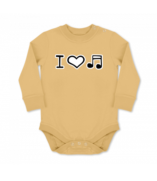 UAX baby body Ski collection for kid with design 1067 I LOVE MUSIC in color MUSTARD