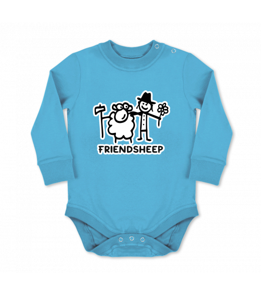 We make sustainable UAX clothing! - hand sewn in the Czech Republic uaxKids uaxSki collectionBaby bodyBABY BODY LONGdesign 1205 - FRIENDSHEEPBLUE ATOLL