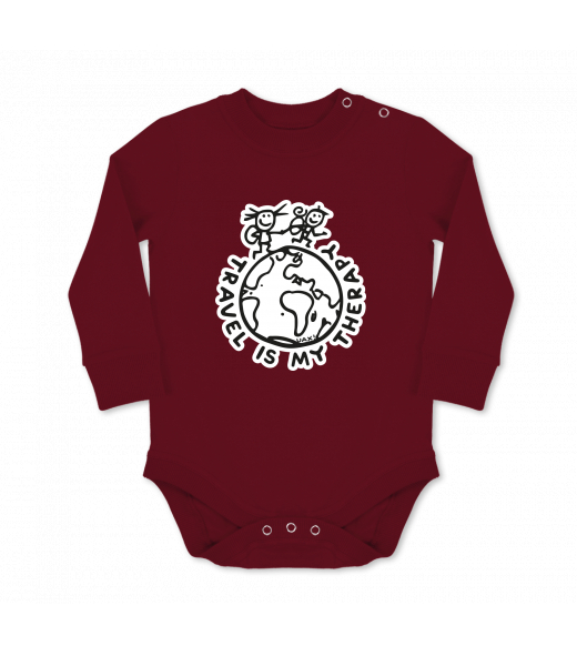 UAX baby body Ski collection for kid with design 1240 TRAVEL IS MY THERAPY in color DARK RED