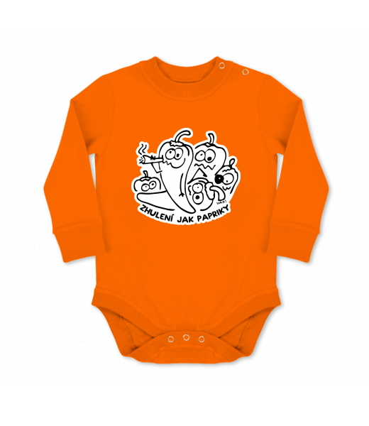 We make sustainable UAX clothing! - hand sewn in the Czech Republic uaxKids uaxSki collectionBaby bodyBABY BODY LONGdesign 1245 - ZHULENÍ JAK PAPRIKYSIGNAL ORANGE