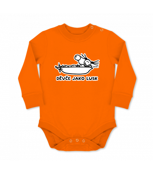 We make sustainable UAX clothing! - hand sewn in the Czech Republic uaxKids uaxSki collectionBaby bodyBABY BODY LONGdesign 1257 - DĚVČE JAKO LUSKSIGNAL ORANGE
