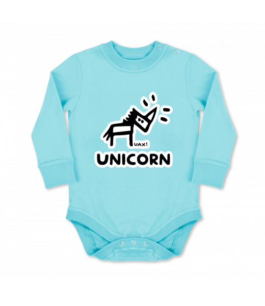 We make sustainable UAX clothing! - hand sewn in the Czech Republic uaxKids uaxSki collectionBaby bodyBABY BODY LONGdesign 1376 - UNICORNPASTEL BLUE