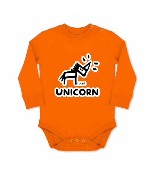 We make sustainable UAX clothing! - hand sewn in the Czech Republic uaxKids uaxSki collectionBaby bodyBABY BODY LONGdesign 1376 - UNICORNSIGNAL ORANGE