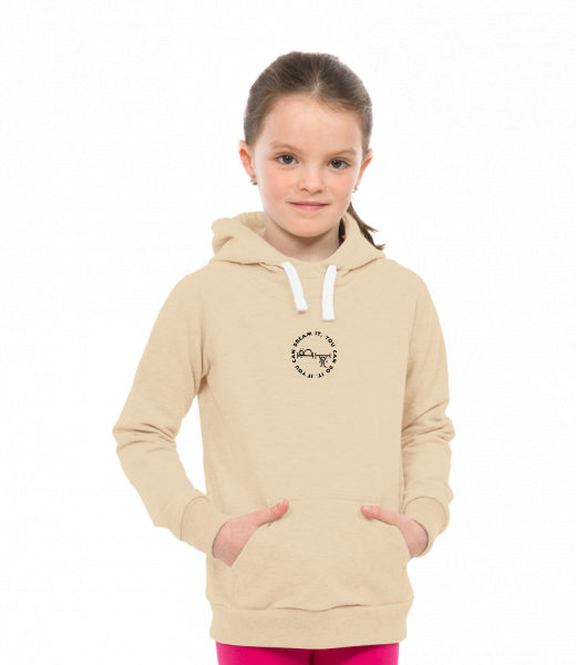 Children's sweatshirt LIGHT with a hood and design UAX! Ski collection for kid with design 1133 IF YOU CAN DREAM IT in color CARAMEL