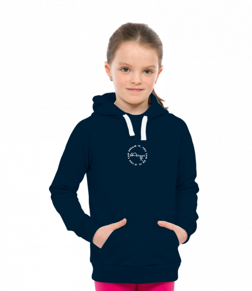 Children's sweatshirt LIGHT with a hood and design UAX! Ski collection for kid with design 1133 IF YOU CAN DREAM IT in color DARK NAVY